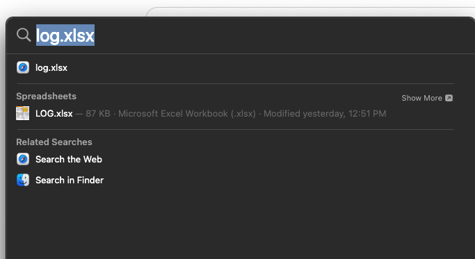 How do I stop spotlight from offering internet suggestions? If I enter "log.xlsx", I really want the Excel file, not to search on Safari, but Safari always comes up first.