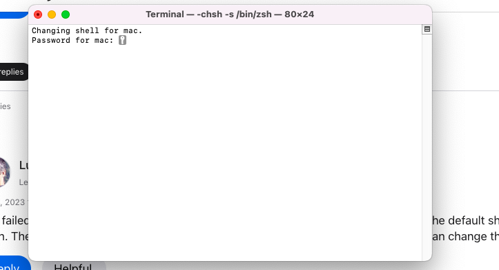 Changing shell for mac.