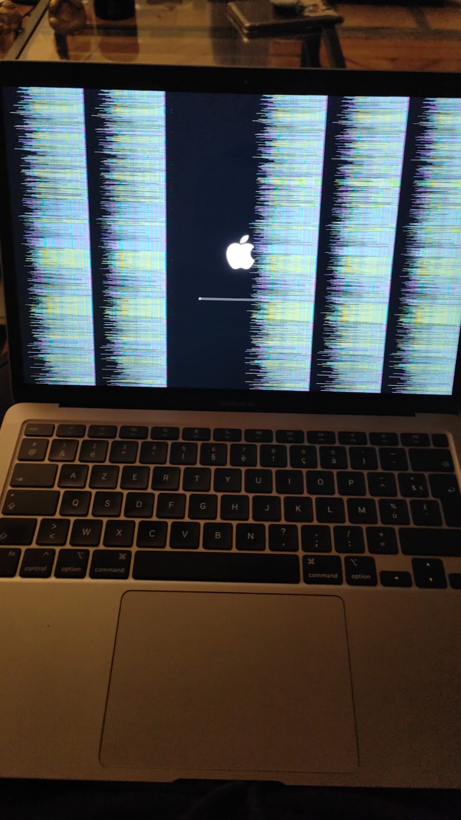 Hey guys im having an issue with my m1 Macbook Air . The screen has these white lanes when black. When i put color it starts flashing has it happened to anyone?