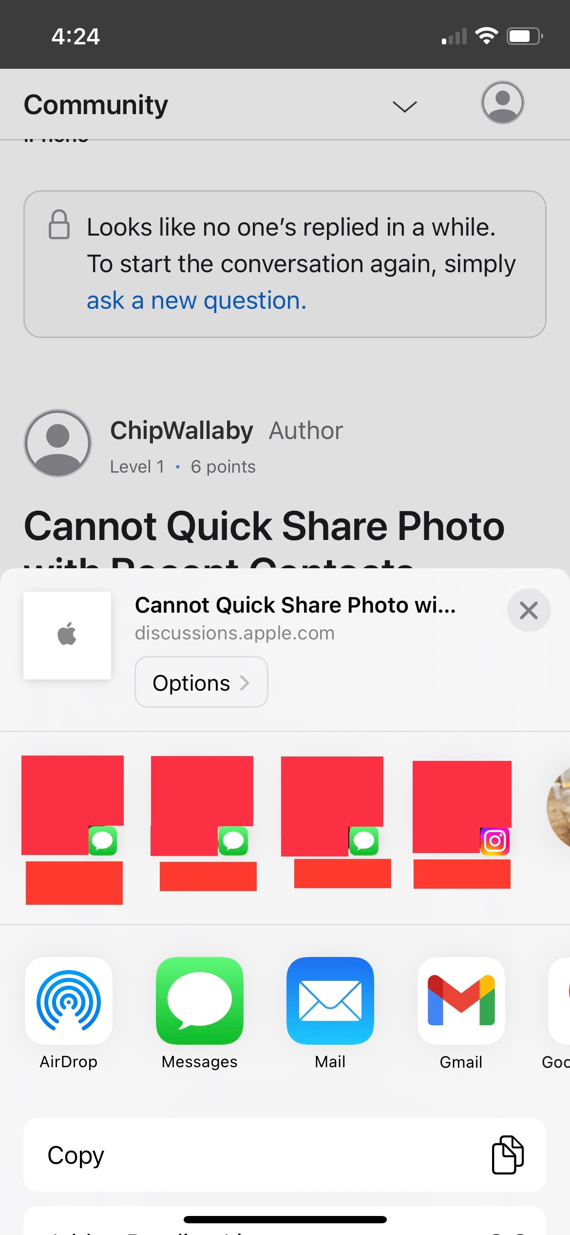 Cannot Quick Share Photo with Recent Cont… - Apple Community