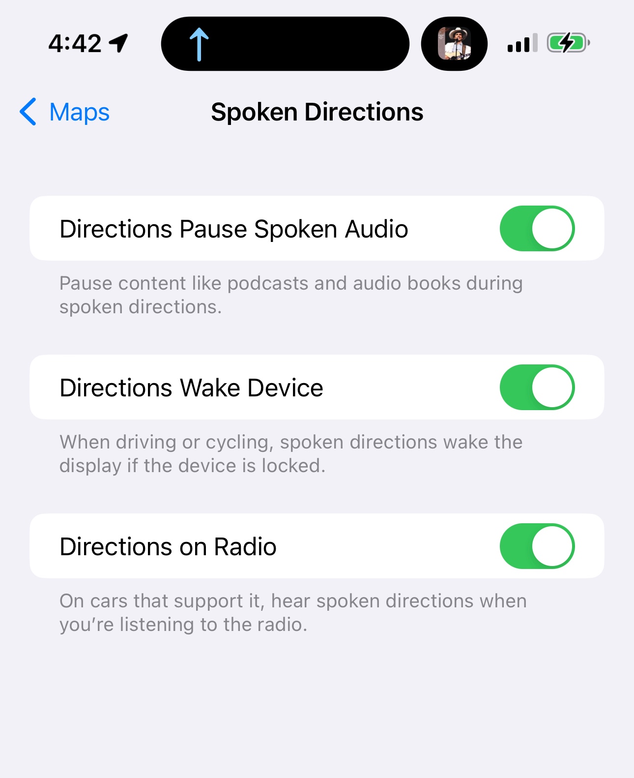 Then, on your next trip, tap the speaker icon on the map display and turn on spoken directions.