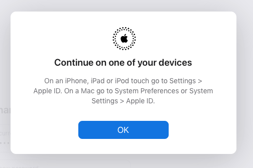 Unable to change Apple ID password because I was unable to "continue on one of your devices"