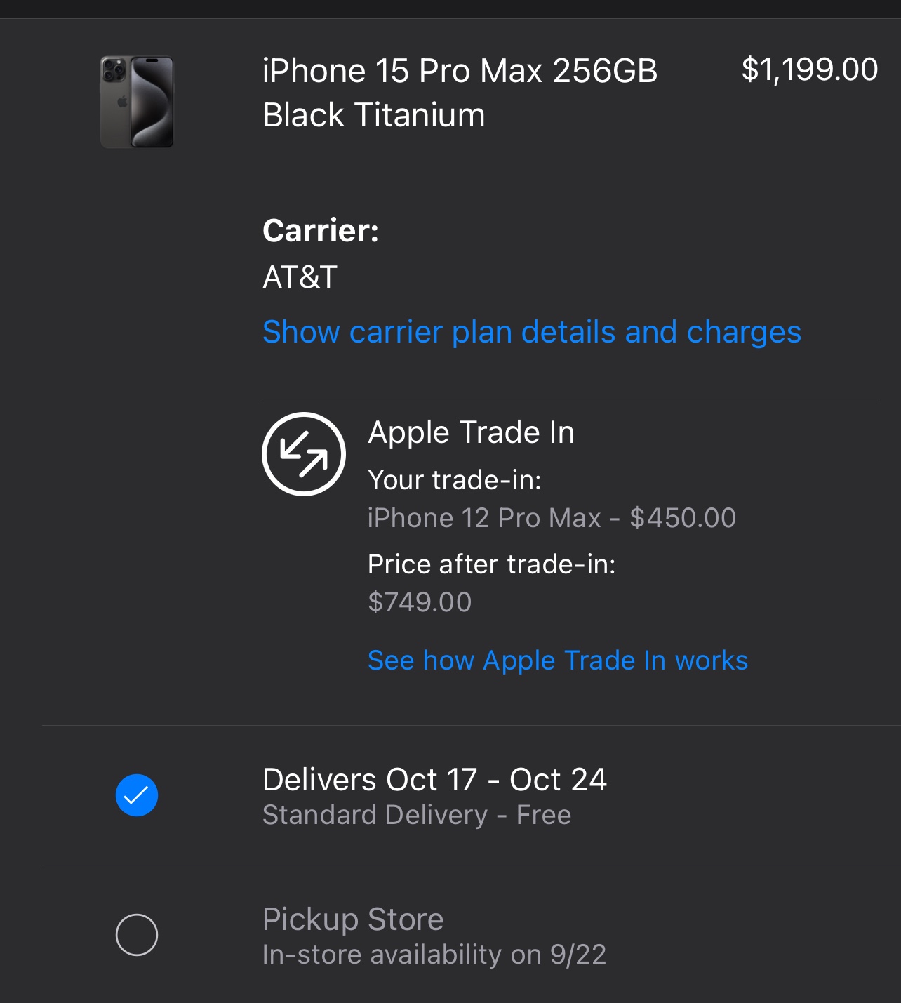 iPhone 15 in-store pickup on 9/22