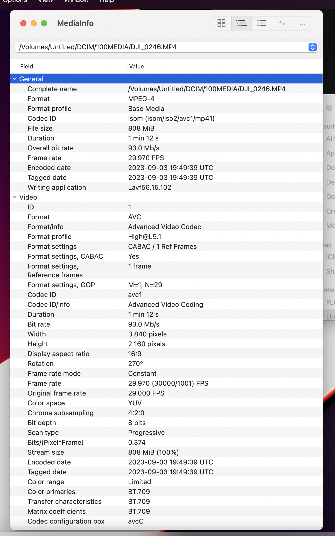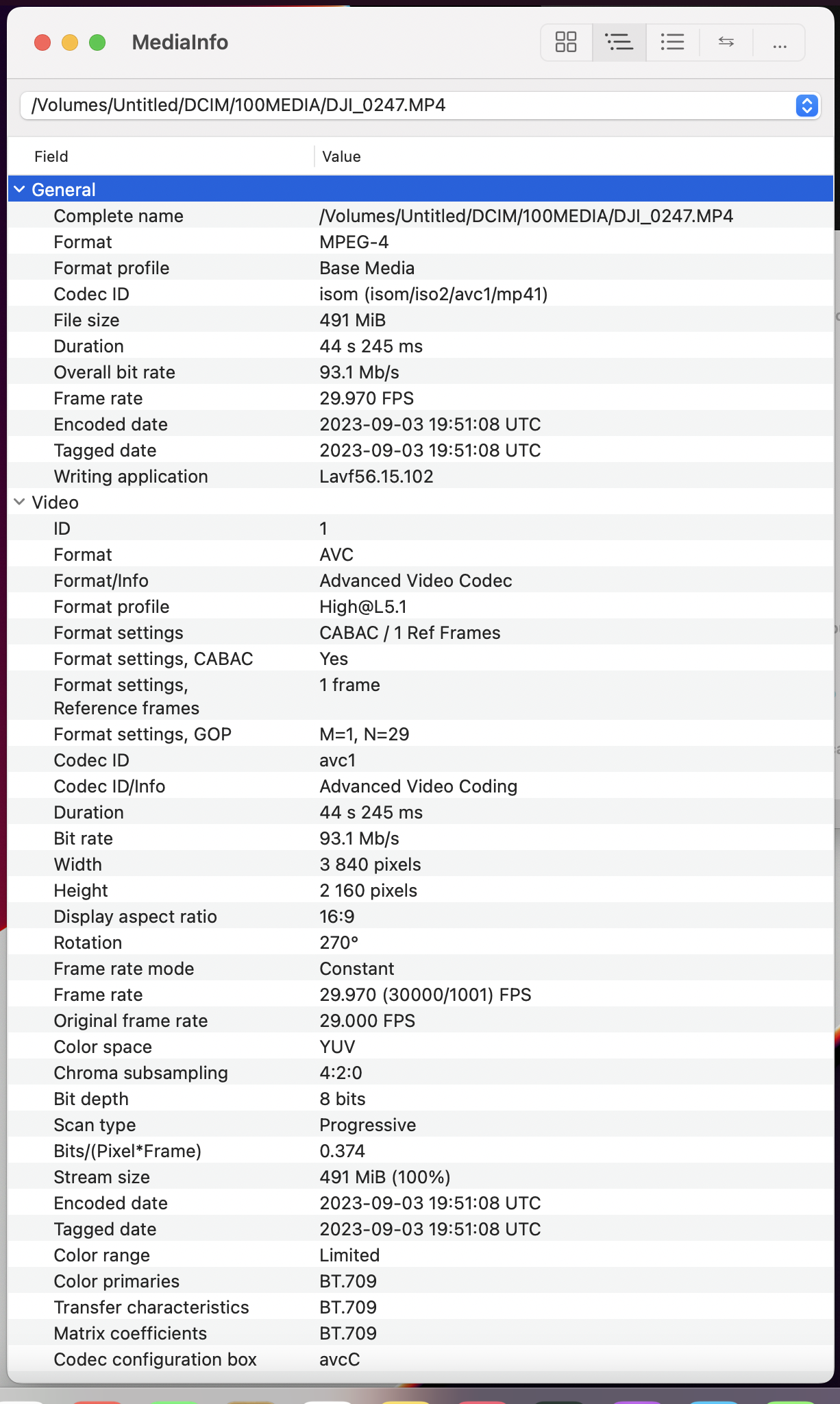 I will send you the one from the DJI. It is currently loading. The ones from my Sony FX30 that caused the problem are too heavy for wetransfer (5,44GB). But I have put one of them in media info. Maybe you can see if there is a problem with these info. It's Chinese to me. Can you tell me if an image is showing? I have a question mark when I upload the screenshot. Thank you.