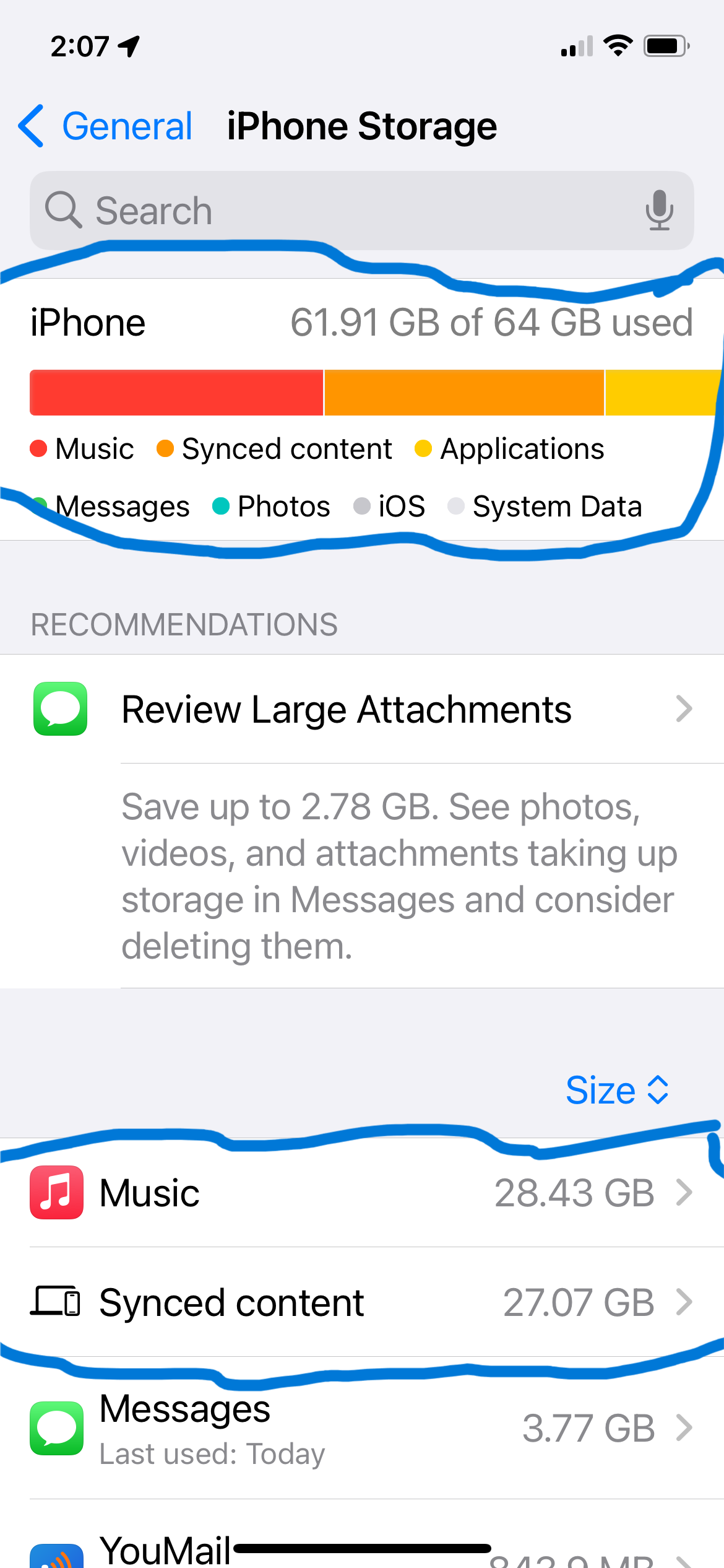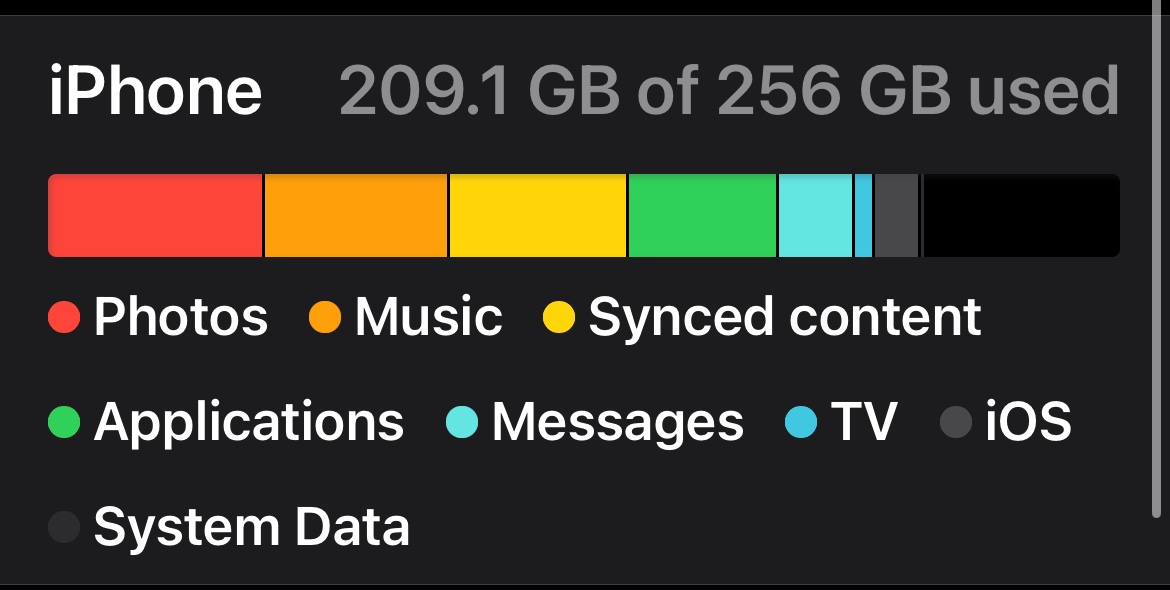 That's not true on my iPhone 12. I see Synced Content and also about 1.2gb of Music. None of it makes any sense.