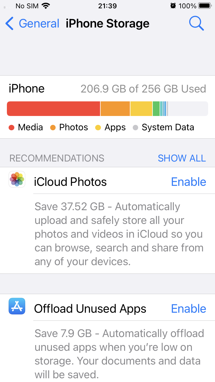 SE2020 photo shows storage used on old phone using ios 16.7.