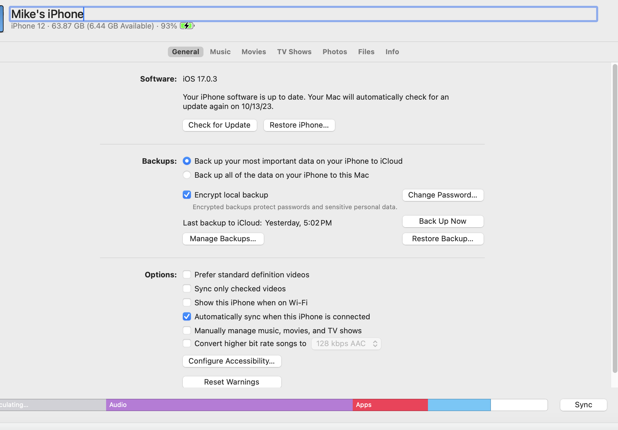 I have 64 g of storage on my X-ray iPhone. It shows 59.6 gigabytes of data in the storage and less than 5 gigabytes available. 25 gigabytes of data that encumber my storage ( included in the storage bar chart of 59.6 gigabytes) are in the Synched data category. If synched data isn’t tying up any real storage, I would have 44 gigabytes of available storage. However the attempt to update to 17.0.1 failed because I lacked required headroom in storage to download and run the update. If synched data is not really data written into my storage it is still logically encumbering that storage and preventing it from being used by the iOS updater, and possibly other applications