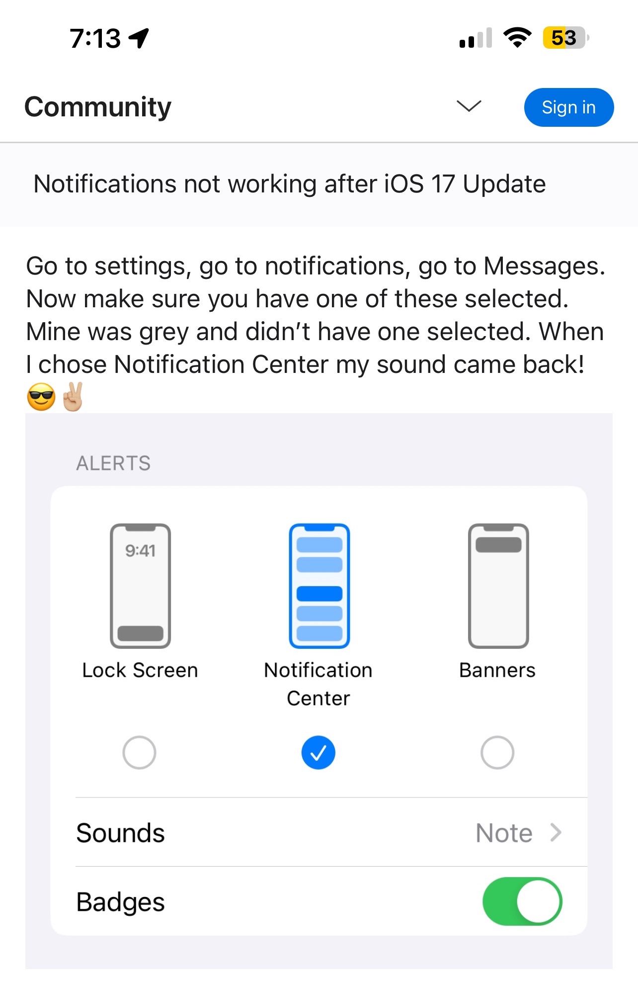 Notifications not working after iOS 17 Update