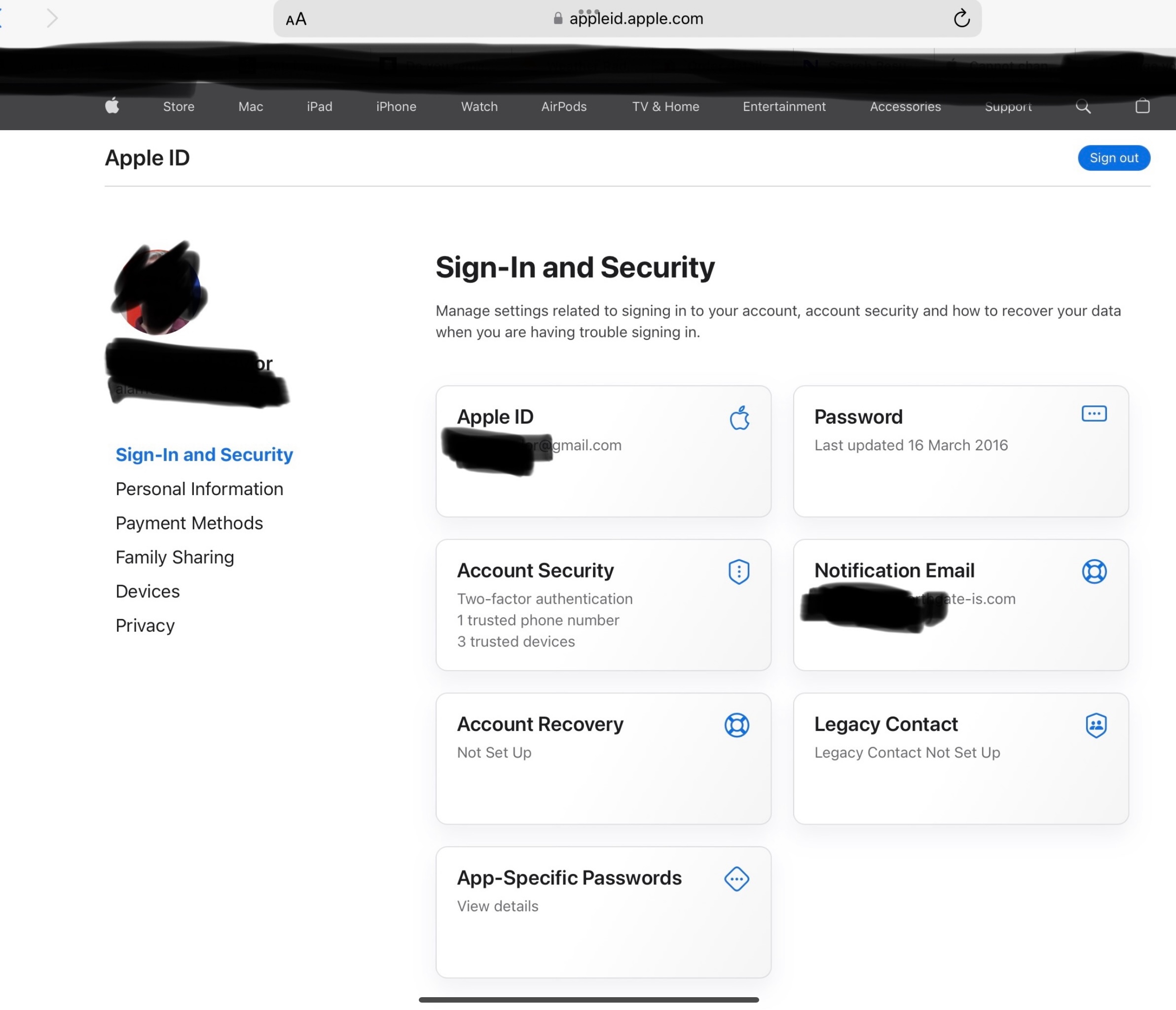 Cannot change/remove Notification Email in Apple ID Webpage