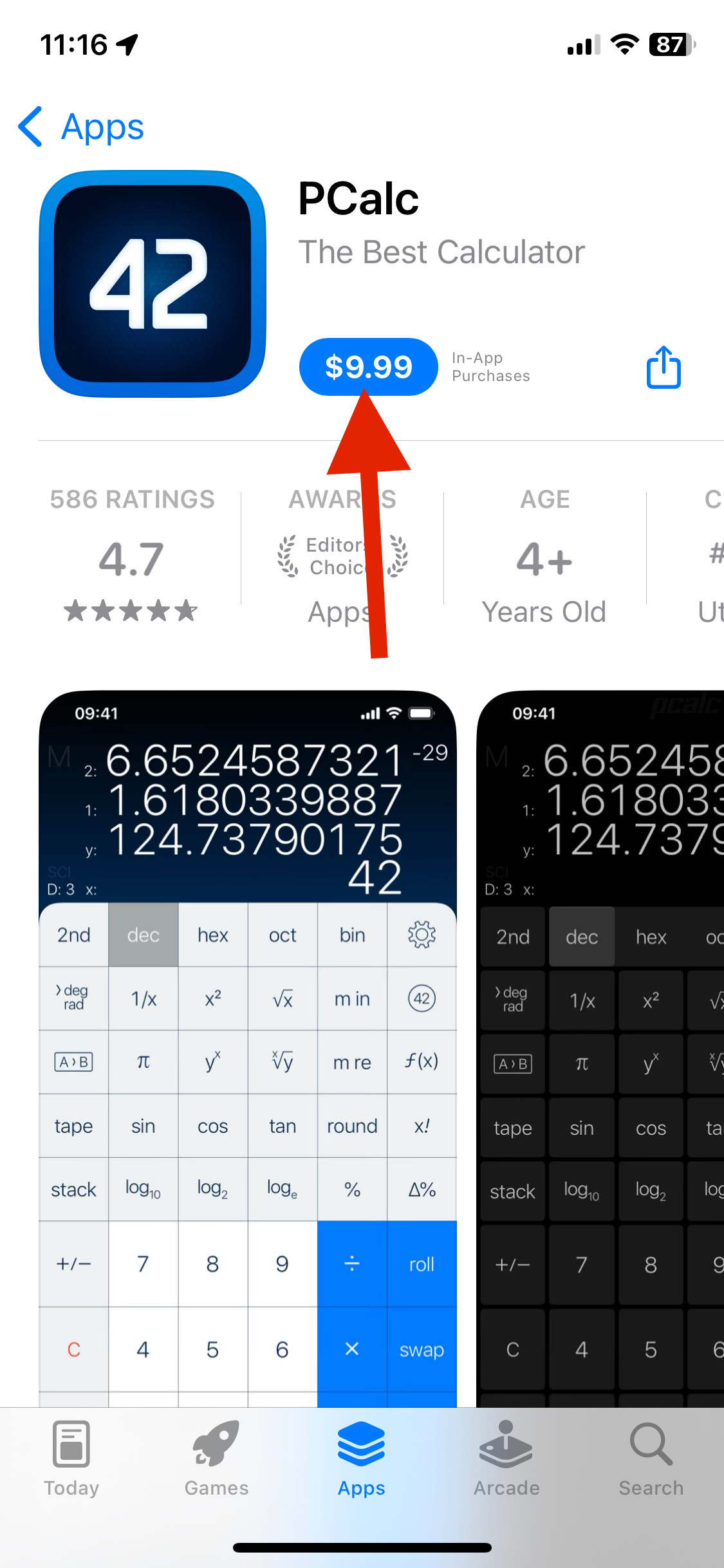 Apps that have a price to download will show the price directly instead of a "Get" button.