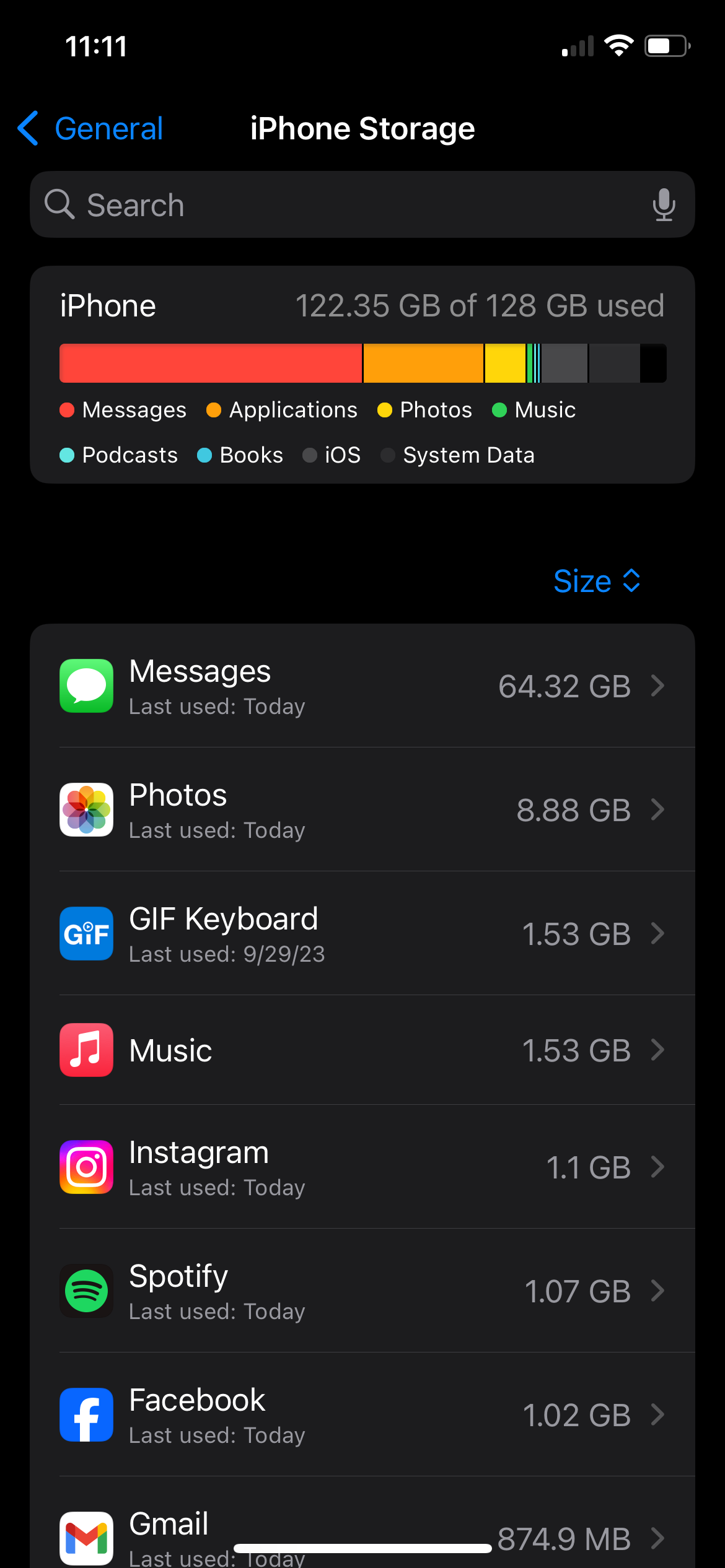 There was no reason for it to take up nearly 20-30% of the storage away from the phone (when my device had about 30-40 gigs left I'm down to 4.23gbs). This has disallowed me to back up my device to my iMac due to now lack of storage space b/c of this issue.