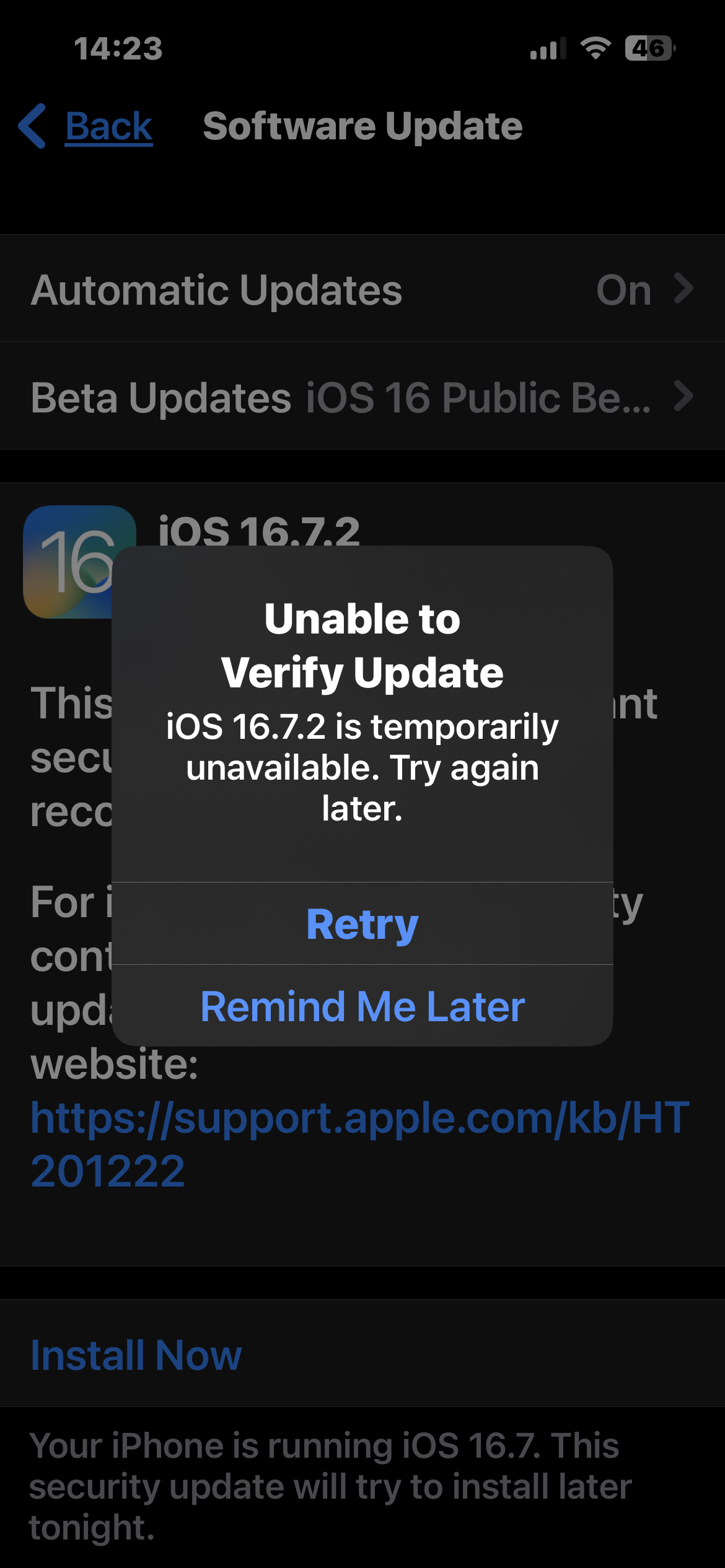I’m trying to download the ios 16.7 update and it shows error in downloading the update