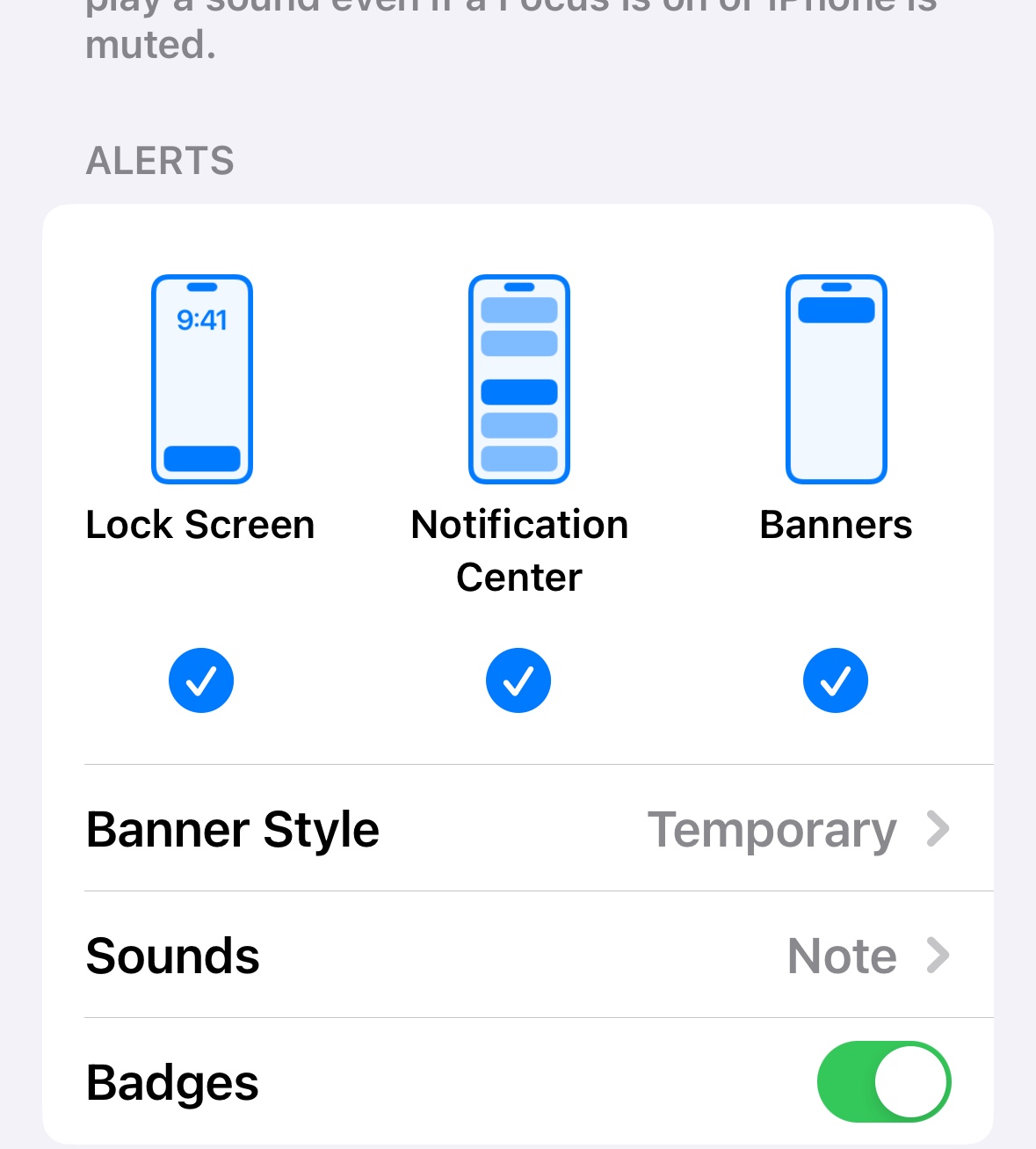 After updating to IOS 17.0.1, I have noticed that I no longer get sound notifications for text/imessage unless I have the phone unlocked and Messages app opened. While it is opened, messages will audibly alert me. This is while using standard apple sounds. Nothing custom. The only way to get it the sound notifications to work when not in messages is to enable alerts for lock screen, notification center or Banners. None of which I have ever had to enable to get sound to work, nor want alerts when my screen is locked.