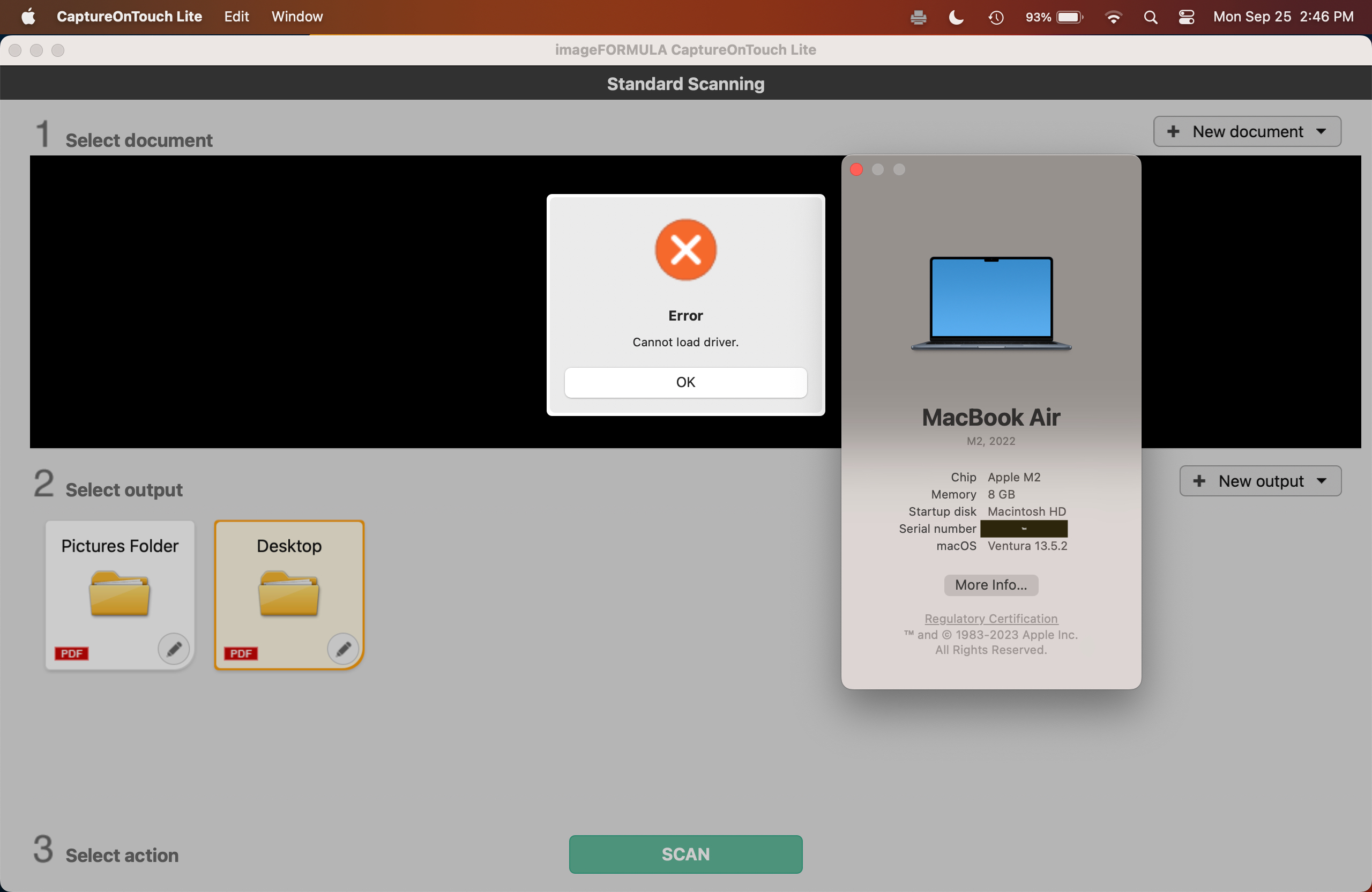 Purchased MacBook Air M2 a week ago, my Image Formula R10 scanner worked