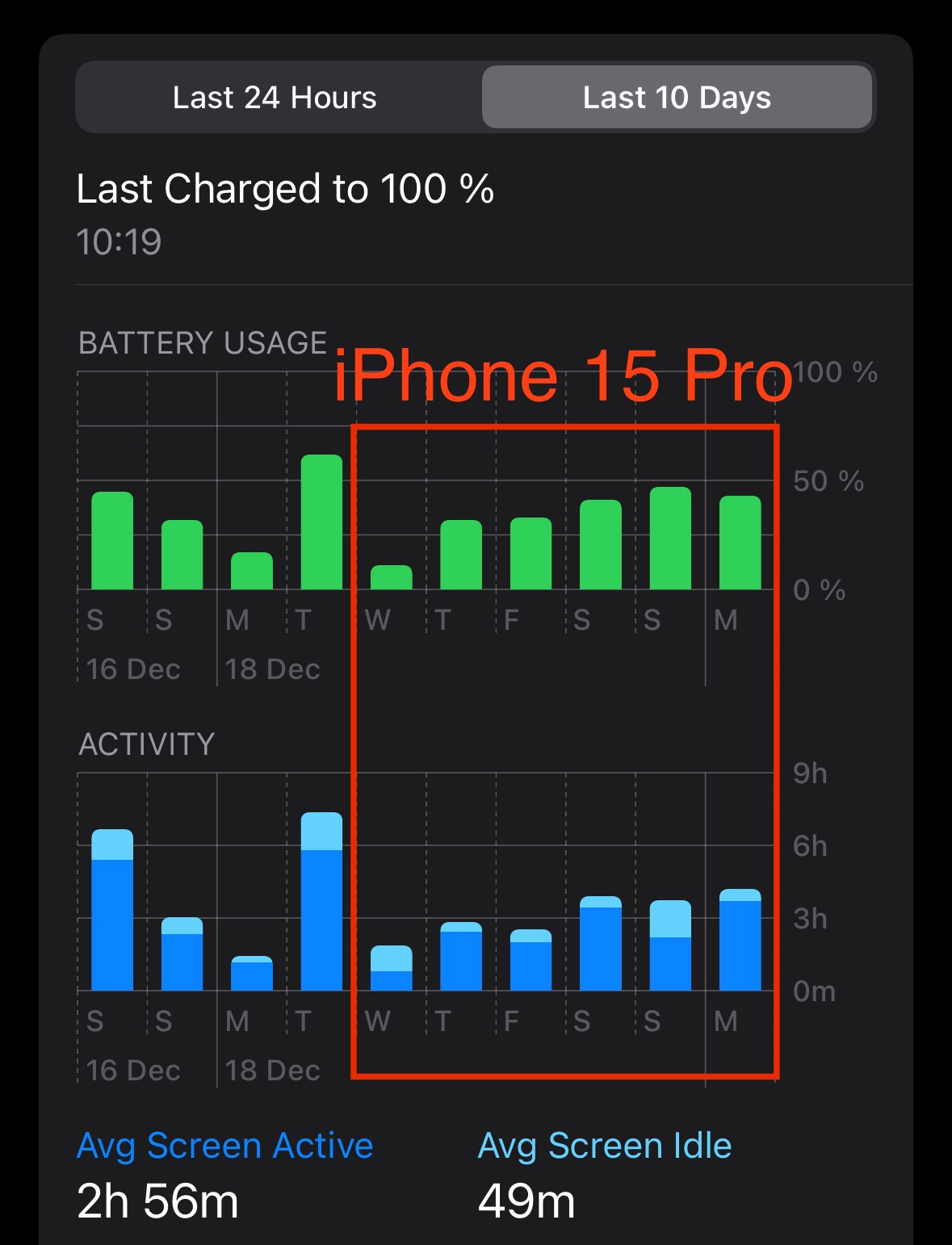 Monday this week and Saturday after the update I had an activity of around three hours and it consumed the same amount of battery as on Saturday before the update (with a usage of more than seven hours). This is horrible numbers for a new phone which is supposed to be a premium version of the 15 series.