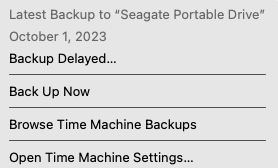 I have two homes. In each, I have a separate Time Machine backup disk. What seems to have happened with Sonoma: Time Machine is starting to report a false "Last Backup" (See the screen capture). "Seagate Portable Drive" is not the last backup. That disk is at my other home. "Beach House" is the last backup. If I "Browse Time Machine Backups," I see all the latest backups on the disk I am currently using (Beach House).