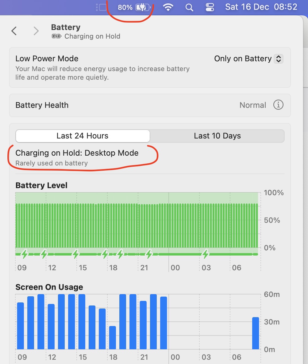 Suddenly after I've updated to Sonoma, the battery start to drain bloody fast to 80% and then stay at 80% as long as I've the charger on