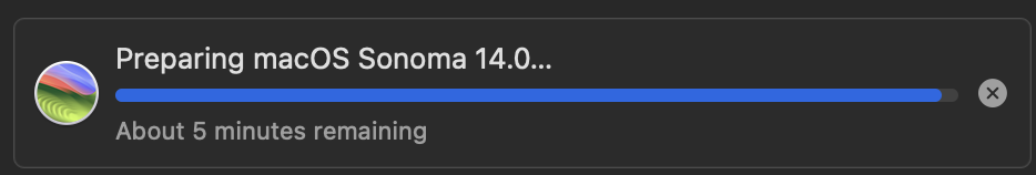 My experience with this update (with two MacBook Pros and one iMac) was that leaving it alone is always best. Both of the MacBook Pros took much longer than 5 minutes when that indicator came on, in one case nearly an hour, but the other was just about 15 minutes. The iMac, which is newer and faster, was very fast.