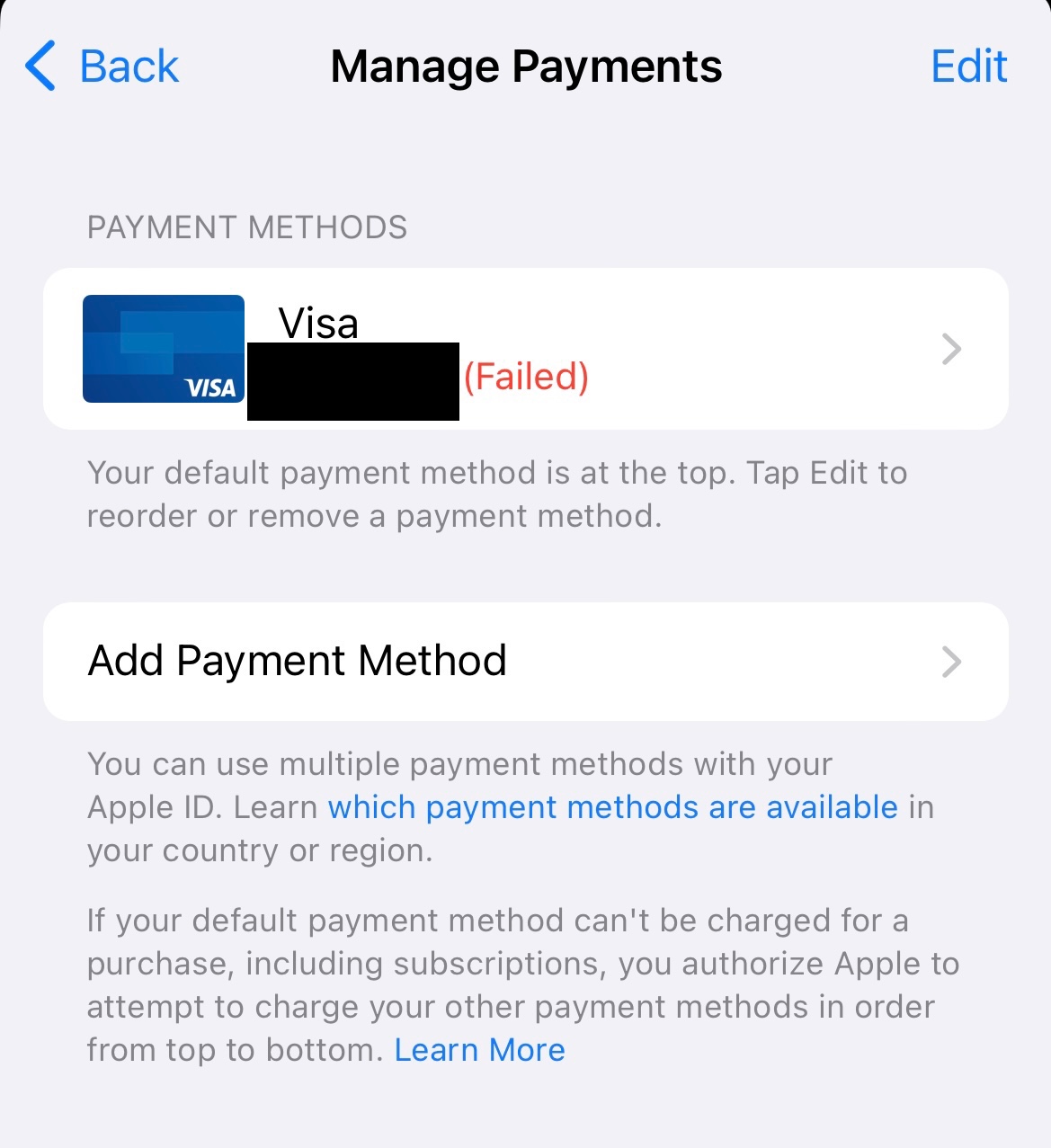 If your payment method is declined in the App Store or iTunes Store - Apple Support
