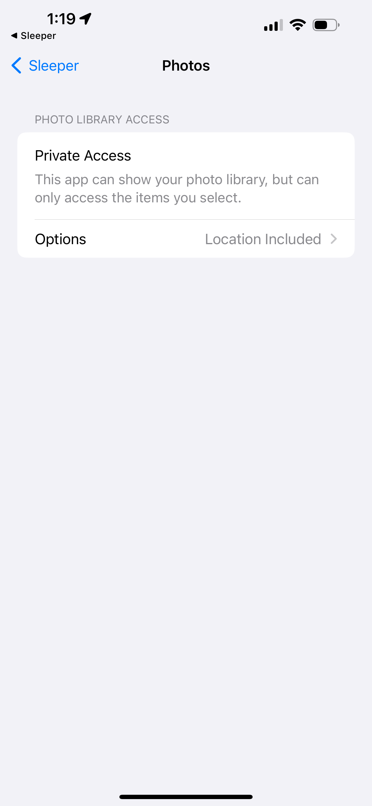 Updated to iOS Version 17.0.2. When I try to send a photo to my Sleeper league, I select the photo and it gives me a "Access not allowed Please enable in settings." message. This is what I am greeted with in settings. No option to change it, stuck on Private Access.