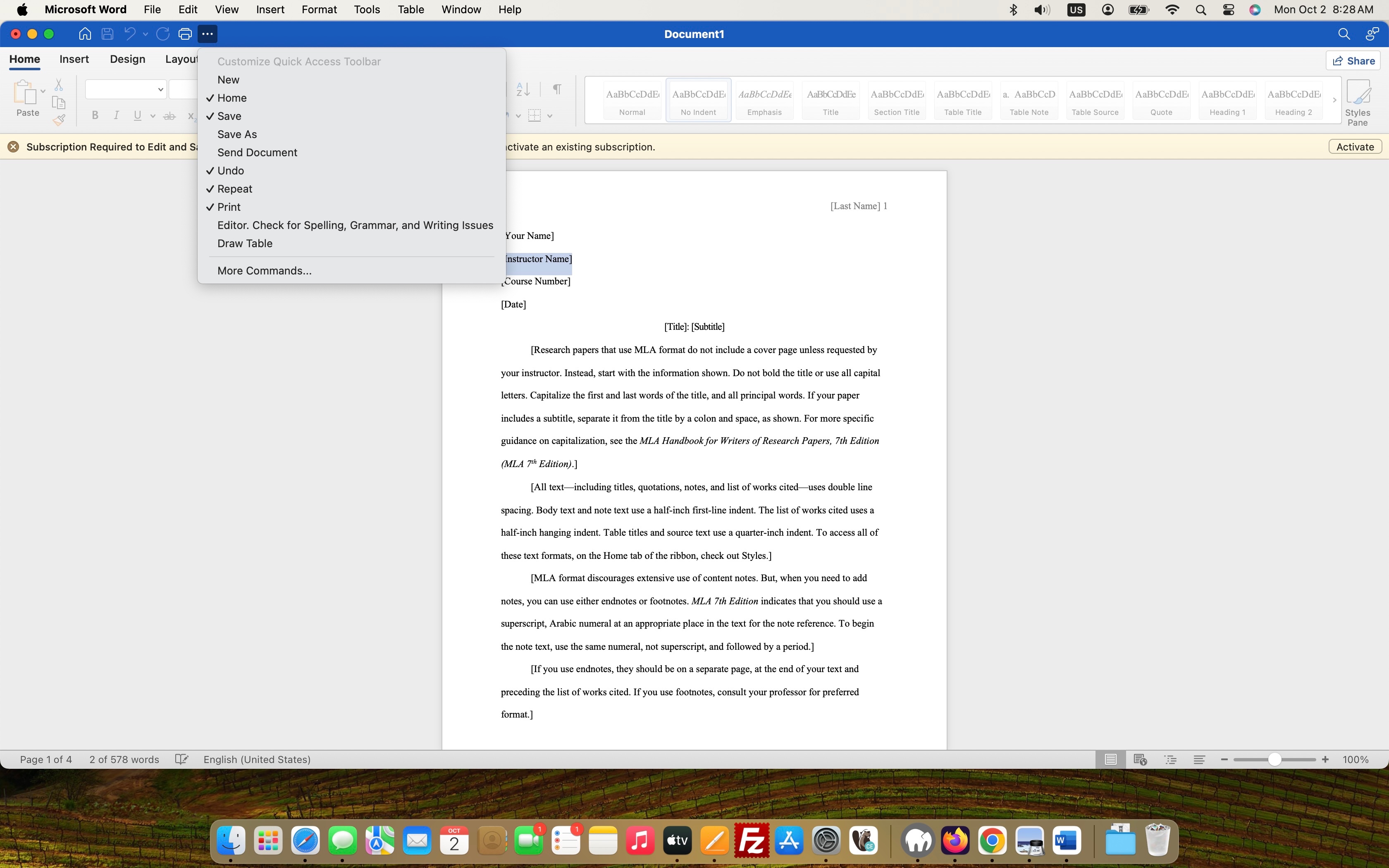 Microsoft Word for Mac on the other Hand, has the 3 dots on the top left menu bar, and holds a small menu of options. Is that what you are thinking of?