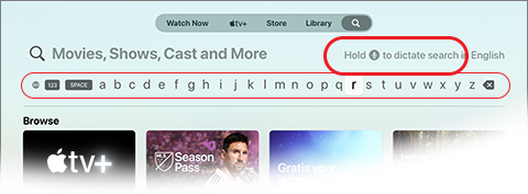 Before testing, you also want to be familiar with two terms Apple uses: "Siri" and "Dictate". They behave very similarly, use the same voice recognition engine in the backend, but Apple TV differentiates them judiciously. In Settings(⚙️)→General, "Dictation" is enabled/disabled under "LANGUAGE & REGION" while "Siri" is enabled/disabled under "SIRI". "Dictation" setting applies inside an app, including third-party apps such as Youtube, 🍏TV app, even the built-in Search app, but only when you navigate to the app's "Search" (🔍) menu AND engages the on-screen keyboard. Anywhere else, including in Apple TV's home screen, Siri is in charge. The practical difference is that "Dictate" allows you to use voice to interact with an app's own search function, while "Siri" interacts with an invisible (Siri) app to perform a function, e.g., "OPEN crossy road;" if Siri cannot recognize the first word as a command, it executes a "SEARCH" command with your voice input. In the latter case, the search result will be the same as if you entered the search in "Search" app, but the results are displayed as a side bar on the current screen, not as a list in Search app.