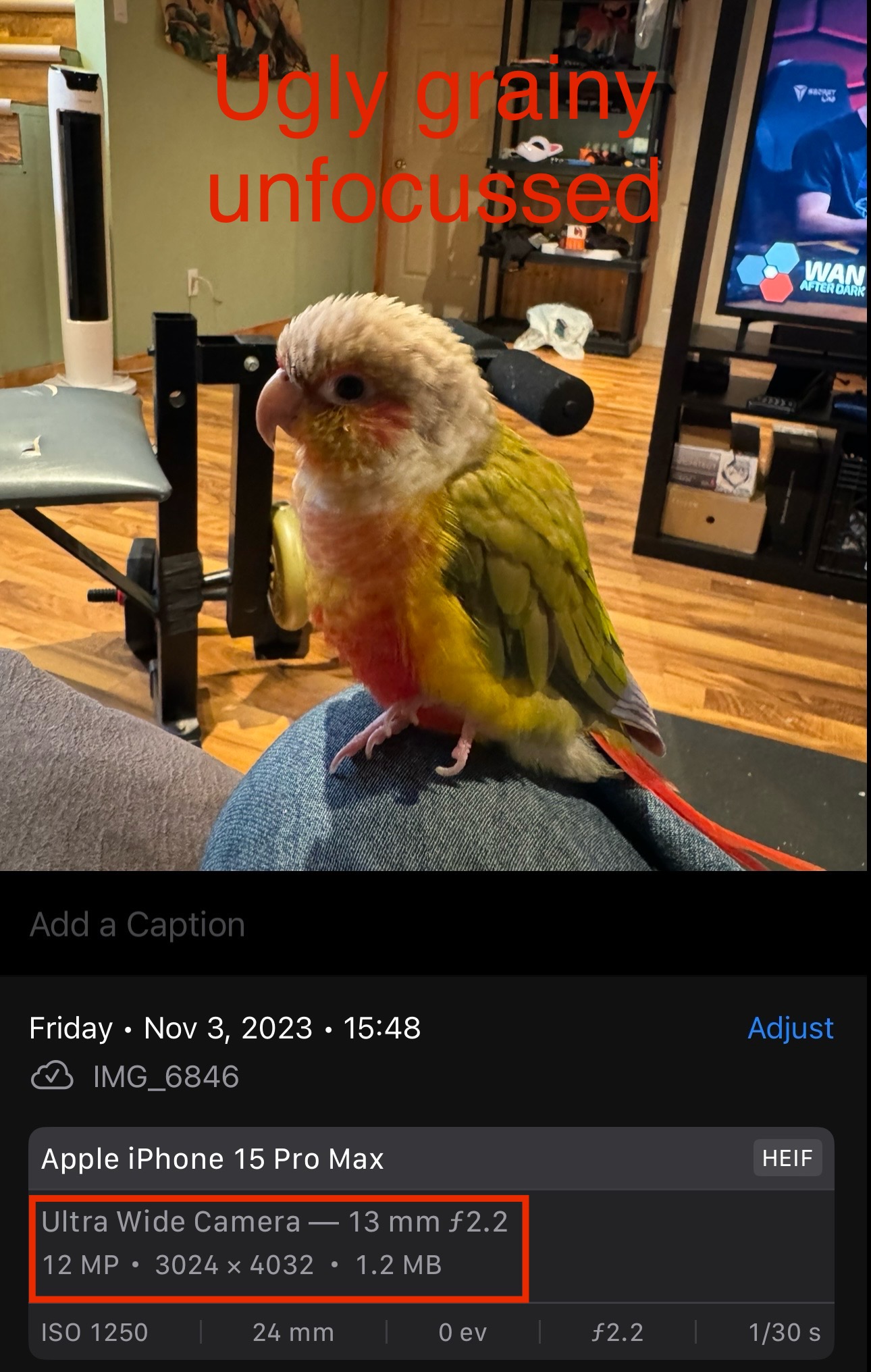 It seems im not having a very good experience with the new iPhone 15 Pro Max. Coming from a 14 Pro Max the pictures were great. nice and sharp, never had issues with "blur" or "grainy" photo's.