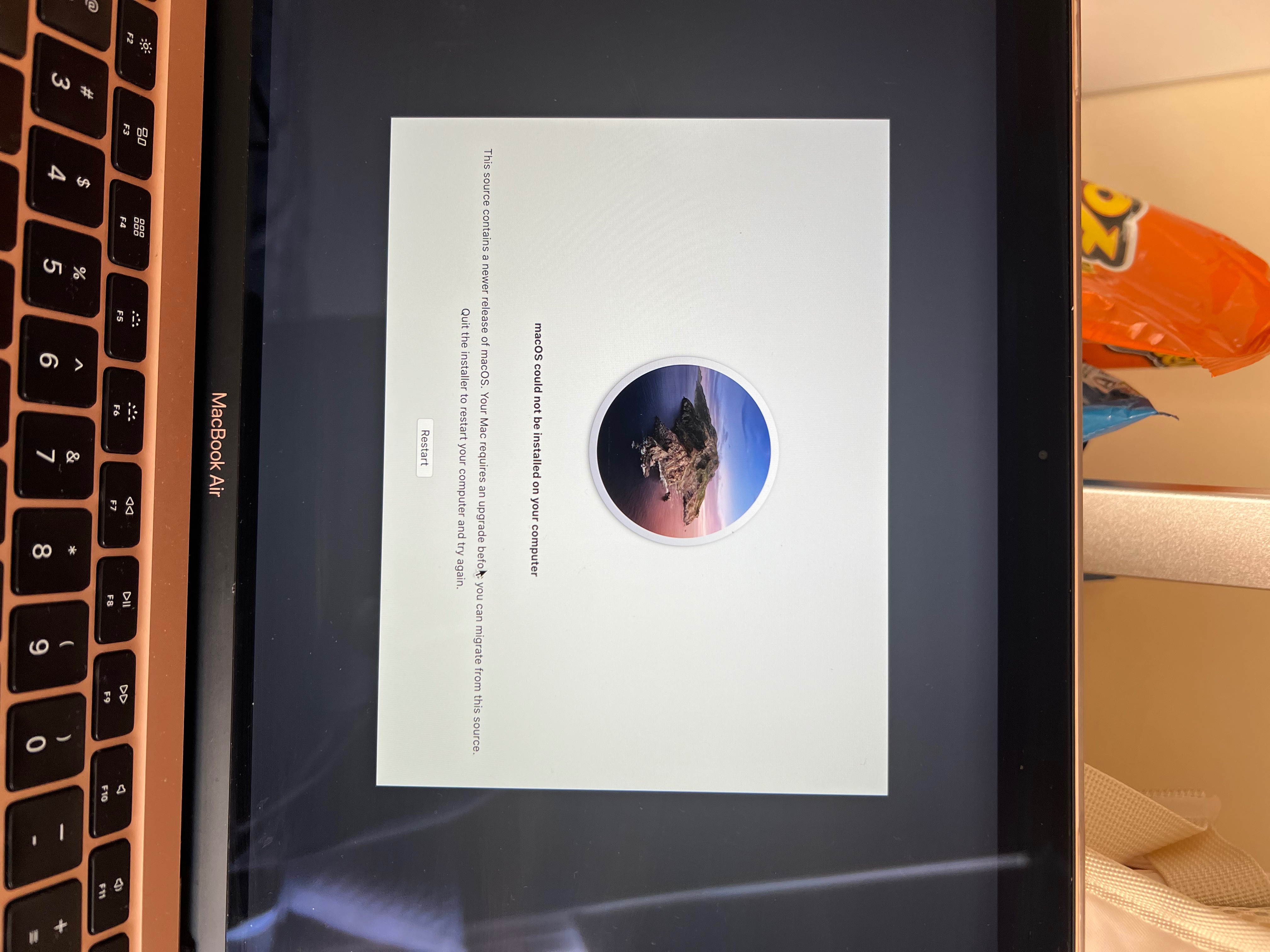 i then tried to create a bootable installer and install in recovery mode. All was good until i tried to select my Macintosh HD drive and was getting two separate errors. 1. “The volume cannot be downgraded.” And 2. “The operation couldn't be completed. (com.apple.BuildInfo.preflight.error error 21.)”