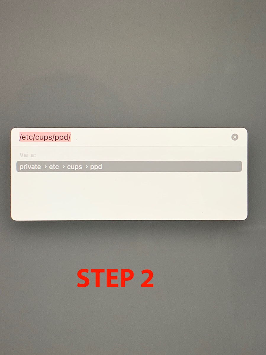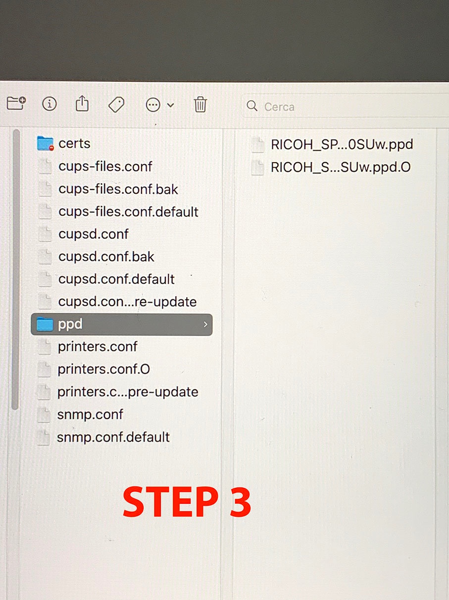 Si apre una finestra, inserire il comando /etc/cups/ppd/