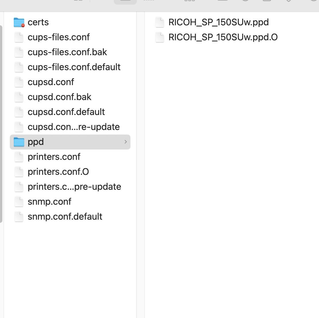 All’interno troverai vari file, quello che interessa è il file “RICOH_SP_150SUw.ppd” e “RICOH_SP_150SUw.ppd.O”