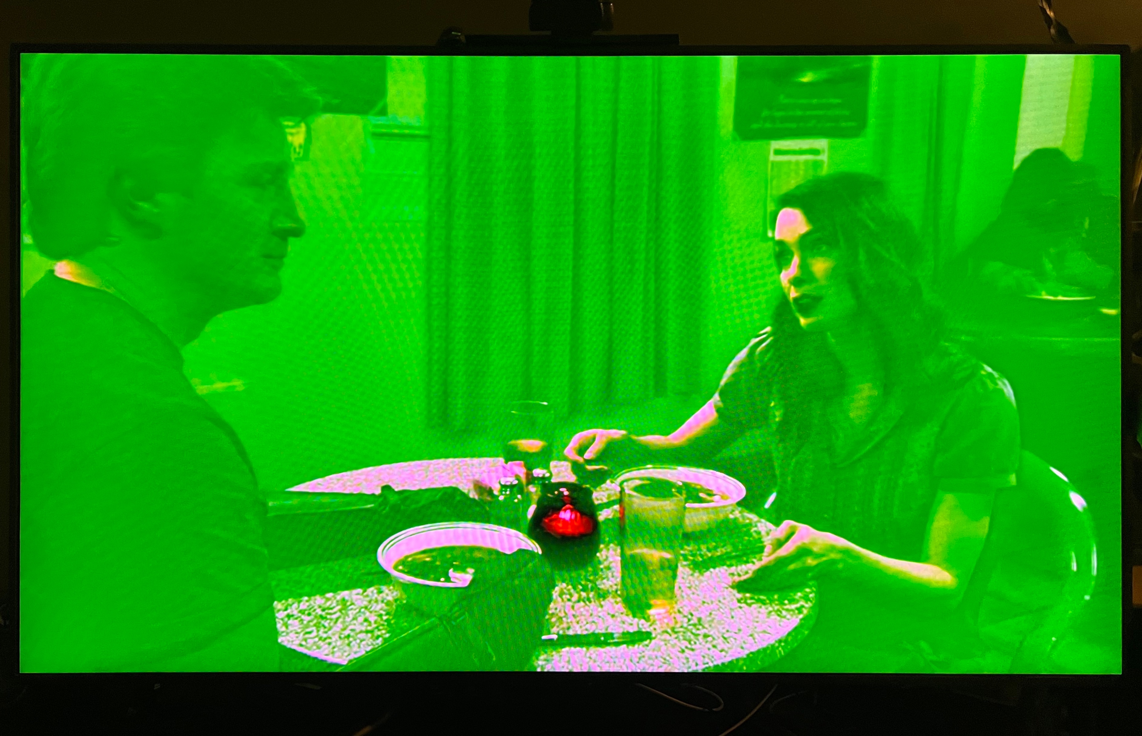 Here is a workaround/solution out there for anyone in the community who runs into troubles with video playback on a Mac getting a sudden and dramatic green tint (see example photo below). Past posts have described these symptoms, but those threads are locked so I'll leave this here and hope people find it who need it. I have experienced the problem myself in Safari while streaming video from websites like YouTube, and in Apple's TV app while playing a movie in fullscreen as soon as all menus and onscreen controls have disappeared from view. I have confirmed the issue in Mojave and Catalina, and have seen it reported in as recent a MacOS version as Monterey.