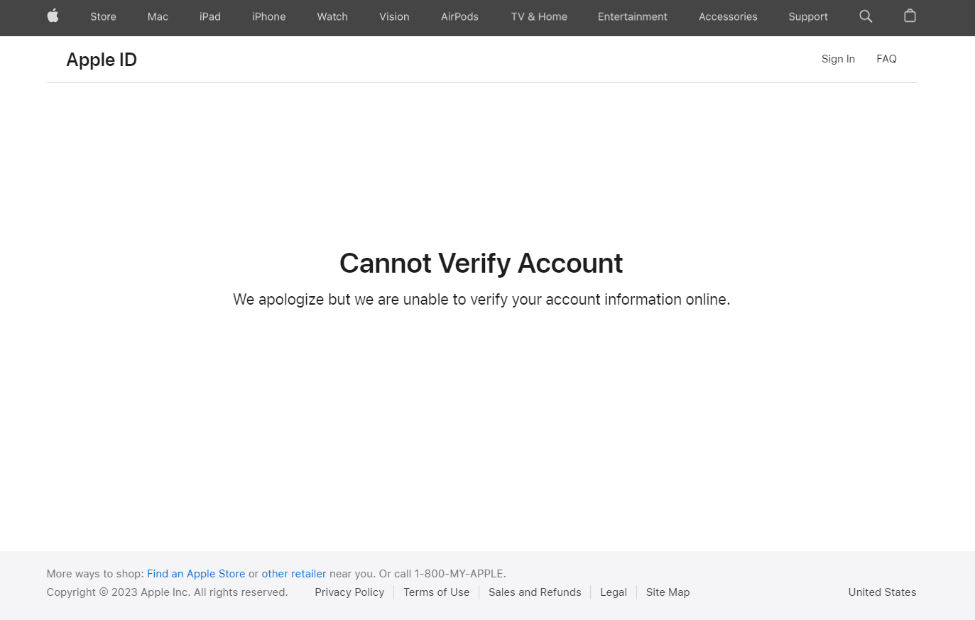 After a few more tries I got this. I got a response 'CANNOT VERIFY ACCOUNT' (screenshot attached).