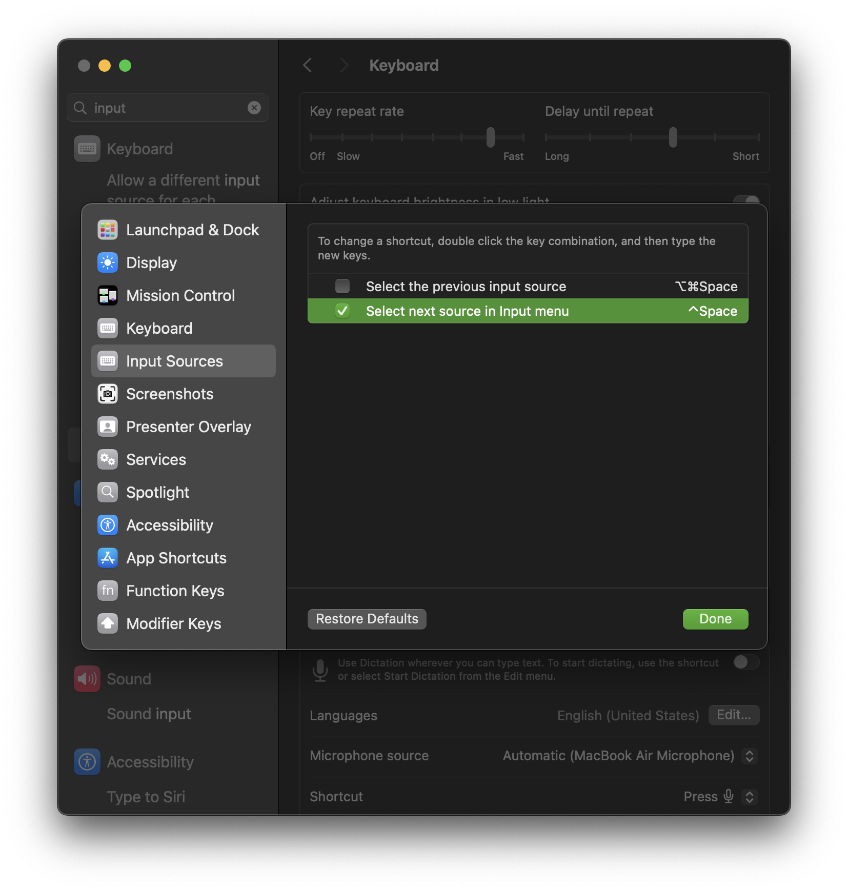 I can't change the keyboard layout (keyboard input language) in Launchpad