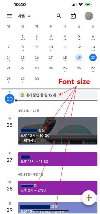 iPhone 15 and Google apps with text size issue, text size cannot be adjusted regardless of what you do