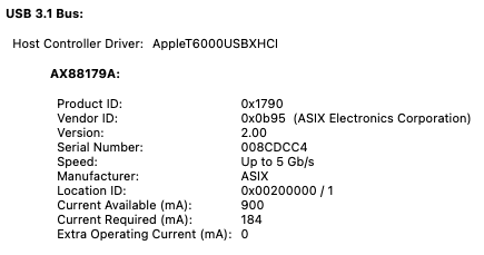 - As a quick overnight delivery solution I order the amazon basics aluminum B0898C73ZZ USB 3.1 Gigabit adapter. It looked like it would work, as the system asked me if I wanted to allow it to connect as soon as I plugged it in. But, alas, plugging the ethernet cable in does nothing. It's not showing up in the network system settings. I suspect I need a driver, but the ASIX website says Apple macOS Driver: Using macOS native CDC-NCM driver. I suspect the amazon adapter is using the same ethernet controller chip.