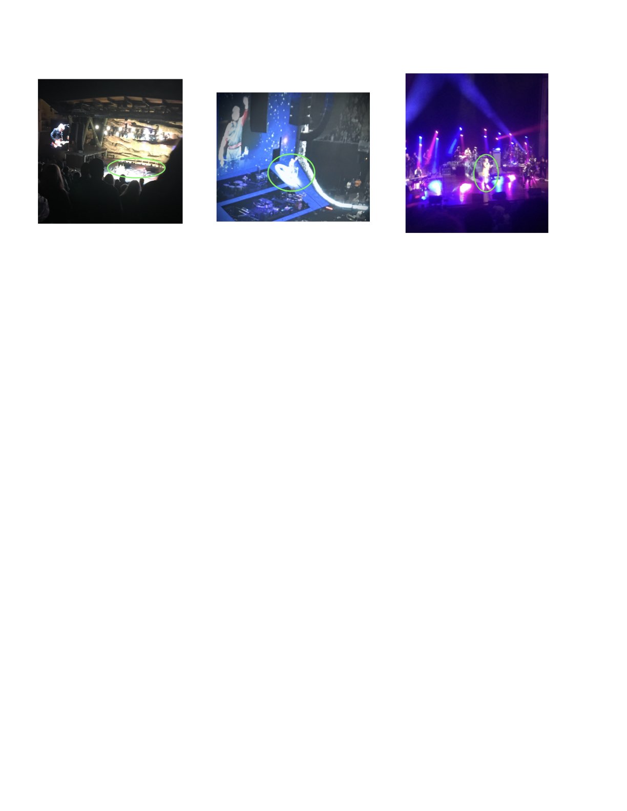 I'm having difficulty with pics / videos taken at concerts . Two are white silhouettes and one is blurry & discolored . They were taken on an