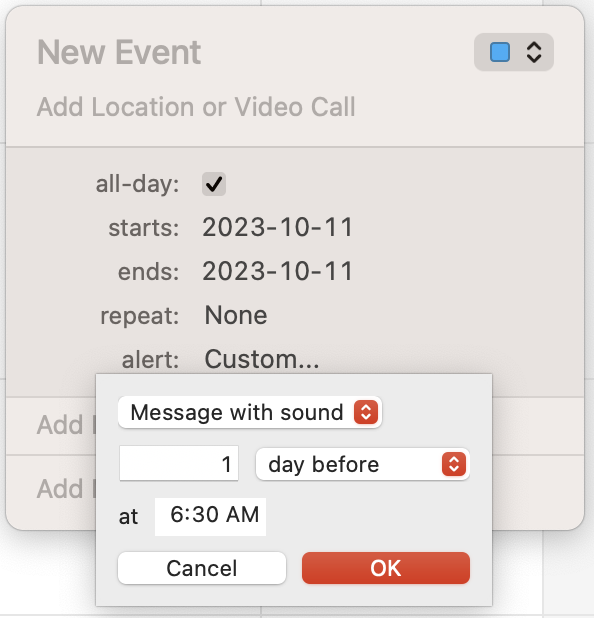 Alert Times for All Day Calendar Events