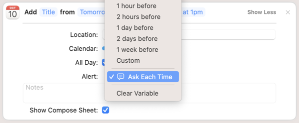 I really can't believe Apple only gives 4 alert options here, 3 of which have that 9am time built in...am I missing something? How can this be?