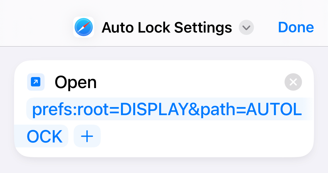 The best you can achieve is for the shortcut to bring you directly to the Auto-Lock setting in Settings but you'll have to manually set the desired time yourself. To do this, use the "Open URLs" action and set it as below: