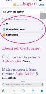 If Not connected to power, then set Auto-Lock Screen> 3 Minutes, Notify Initiation.