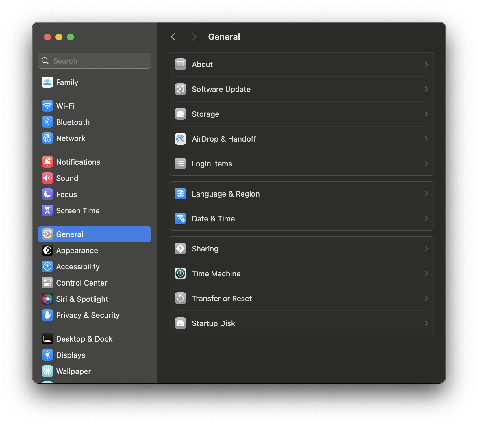 The Apple ID section of System Settings should appear at the very top, above Wi-Fi. This is strange.