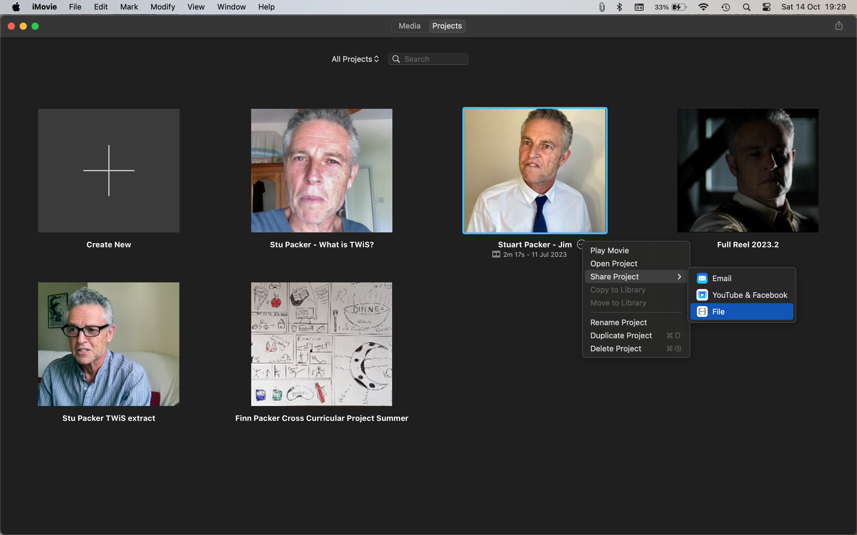 After editing a movie, I return to the Projects screen*.