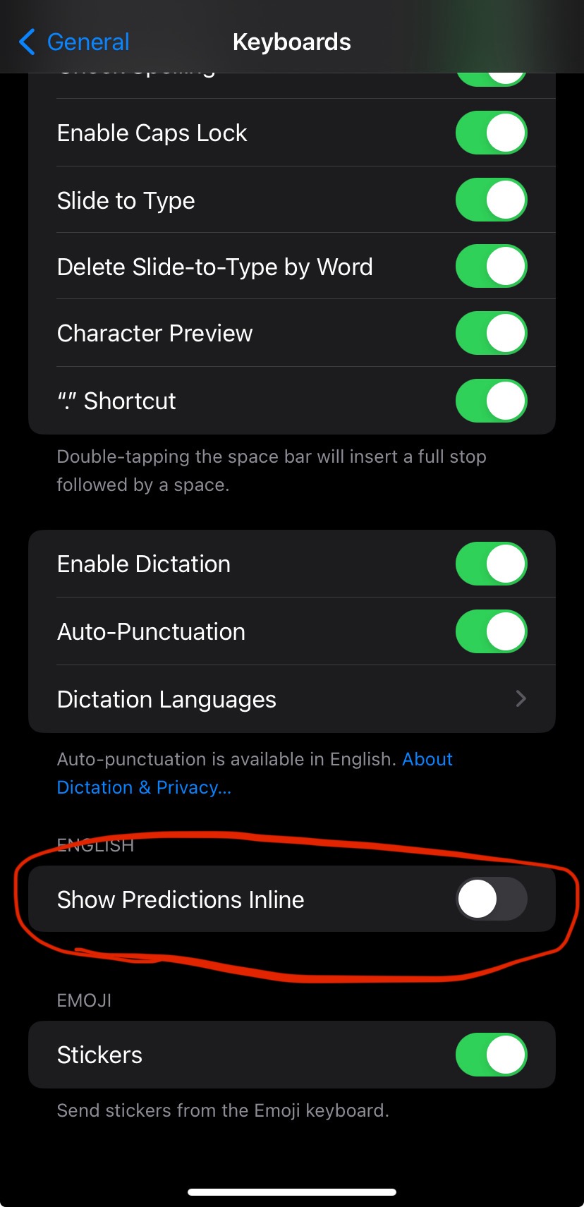 As you type, predictions that complete the word or phrase you’re typing appear inline in gray text. Tap the Space bar to accept the prediction for the word or phrase; keep typing to reject it.