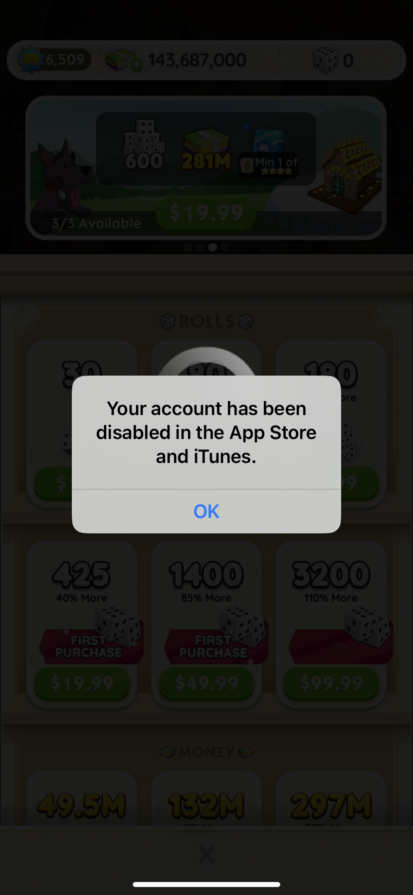 If you see a message that says "Your account has been disabled in the App Store and iTunes", there is a problem with your payment method on your account, to resolve the problem you need help from Apple support, click -> contact Apple Support for help.