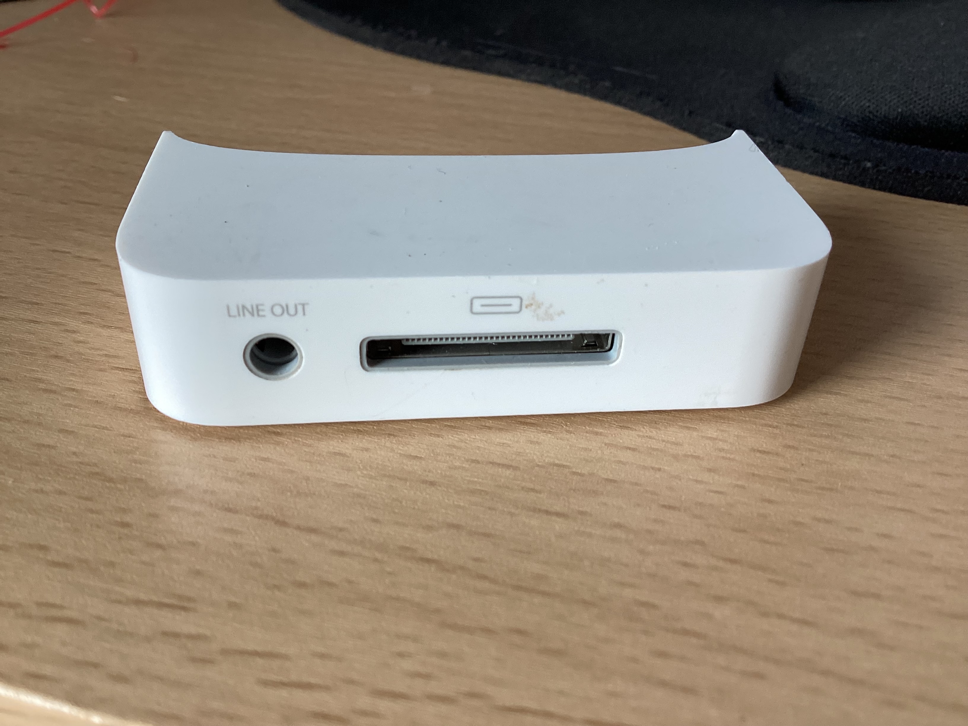 As I mentioned previously, most dock bases had notches in them, intended to secure adaptors, clipped into place, that would then have the appropriate size fitting for other models of iPod or iPhone. The base that you have seems to be for a specific device, shaped in such a way that it fits snuggly into that base. Perhaps a second generation iPod Touch, or an early iPhone.