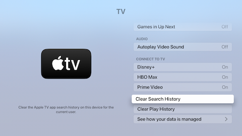 Is there any way to clear the watch or search history in Apple TVOS 17+? Seems like that option is gone, or is it now hidden?