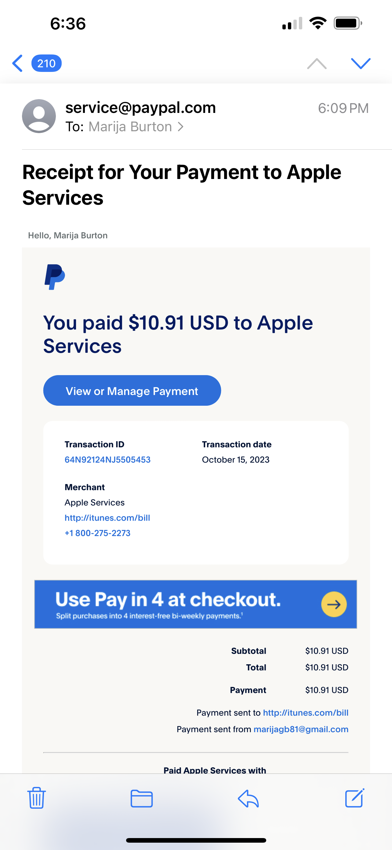 I don’t know what is this charges on my Pay pall account of 10.91 don’t know what is for