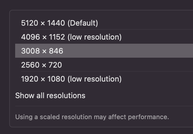 Which native HiDPI resolutions do we get with an Apple M2 Pro on a 32:9 @5120x1440 screen, please?