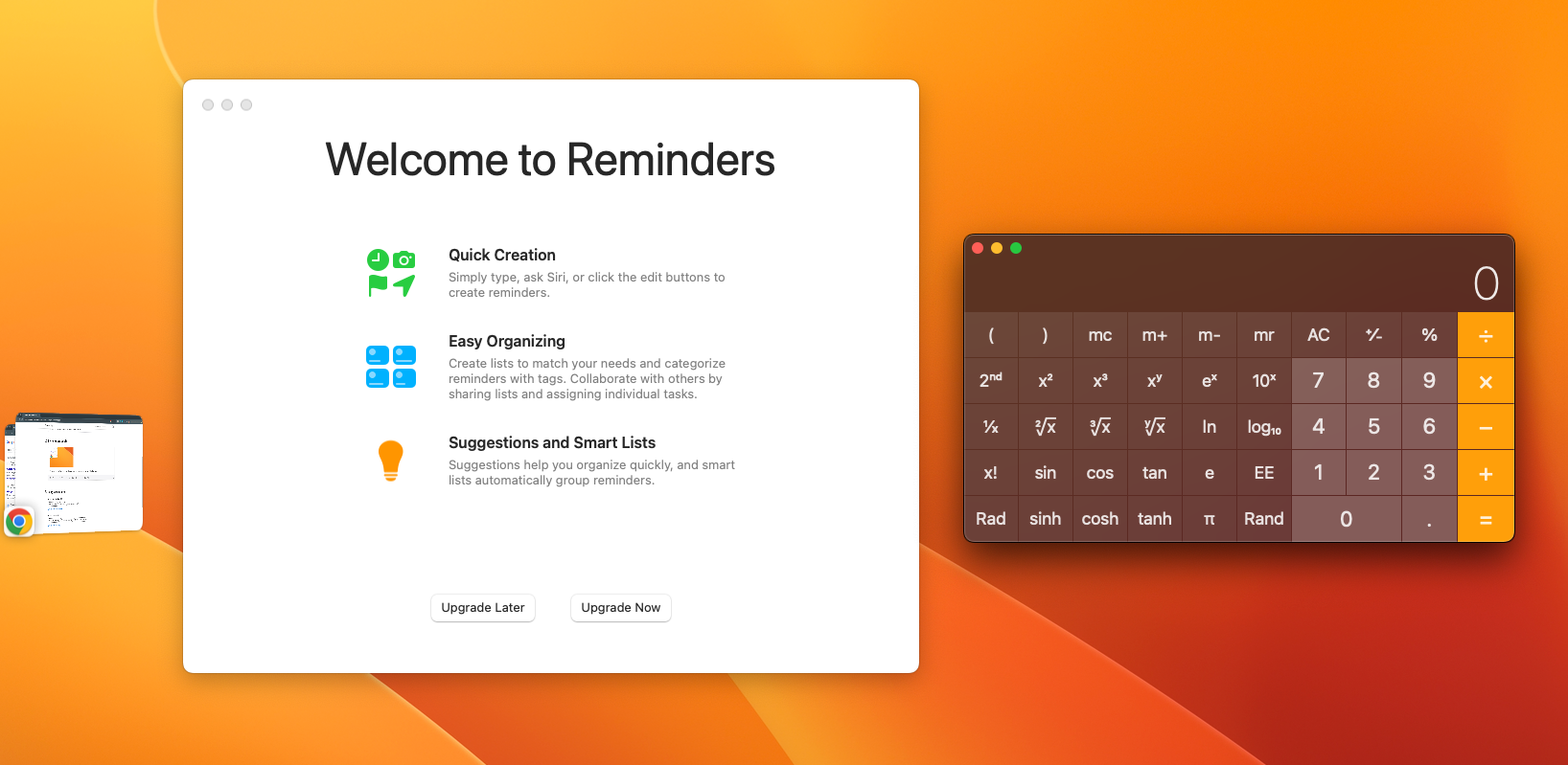Here I have three stages per application: Reminders, Calculator, and Chrome.
