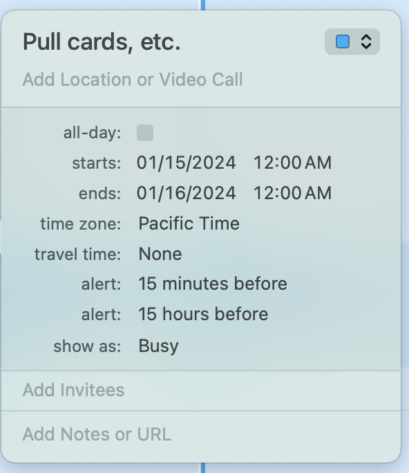 I'm not sure how I did it, but I created a recurring event that was only supposed to occur monthly. It's showing on my calendar as an all-day, every day 'busy' event, and when I try to delete it, I can only do that one day at a time. The 'delete all future events' function doesn't display. This thing seems to be on my calendar into perpetuity.